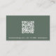 This minimalist dark sage green business card features ample negative clean space adding handwritten notes or information plus a qr code.