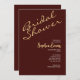 Minimalist & Simple Gold & Mahogany Bridal Shower Invitation