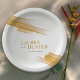 Minimalist simple golden brown colour ink strokes wedding paper plates. Other matching items and colour options are available. © Original ink brushstroke art and design by Sarah Trett for www.mylittleedenweddings.com on Zazzle.