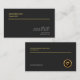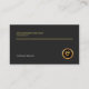 A simple plain minimalist design. In an elegant black background, a yellow line demarcates your prestigious name and job title from your business name and contact details.