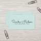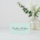 Clean white written signature typeface business professional business cards with a clean minimalist style black type on mint green. Just a touch of whimsy in the typeface.