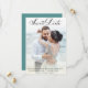 Stylish Script calligraphy simple,elegant and minimal Wedding Photo Save The Date Card.A perfect tropical beach destination weddin save the date card with aqua green or tropical green colour backgroud
