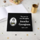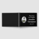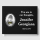 This mournful funeral or memorial guest book features the message "You are in our thoughts,", along with a customised name, and birth/death dates. It also features a custom photo. It could be used to record condolences for the relatives and friends of somebody who has recently passed away.