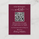 Minimalist Simple Wedding Website QR Burgundy Enclosure Card