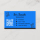 Make a lasting impression with this sleek badminton-themed business card, perfect for coaches, players, and sports professionals. The front features a minimalist black background with a bold electric blue name and shuttlecock icons, while the back showcases a bright blue background with detailed contact information, a QR code, and badminton-themed graphics.