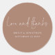 Minimalist Soft Brown Love Thanks Names Wedding Classic Round Sticker