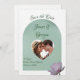 This minimalist acrylic pink lotus flower and pale green wedding save the date is a simple and very romantic announcement for your special ceremony. It can be personalised with your own photo and the names and information specific to your up coming wedding