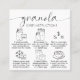 Minimalist Granola Care Cards with elegant script font and care icons. This modern black and white sourdough granola care guide includes the most important care instructions with icons for each step, so your customers know how to best store fresh granola or muesli. You can edit all instructions, add your logo and contact details to this card to make your personalised care note cards for micro bakery.