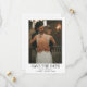This simple and elegant black and white wedding save the date card features your personal photo on the front, with a mix of modern handwritten script and bold serif text.