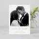 This simple and elegant gold foil wedding save the date card features your personal photo on the front, with a mix of modern handwritten script and bold serif text. There is room for additional information on the back, including your wedding website.