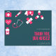 Celebrate the everyday heroes in scrubs with this bold Nurses Day postcard showcasing clean medical icons—stethoscope, syringe, ambulance, pills—framed against a vibrant teal backdrop and accented in magenta. Each symbol speaks of care and dedication, making it an ideal thank-you card for hospitals, clinics, or personal messages. Send your gratitude on National Nurses Day with a design that honours their compassion and hard work.