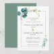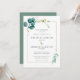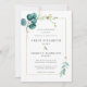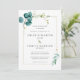 Minimalist Teal Blue Botanical Gold Wedding Invitation