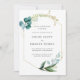 Minimalist Teal Blue Gold Botanical Wedding Invitation