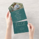 Introducing our sleek and elegant wedding invitation featuring a dark teal background with ivory text. The top of the invitation can be customised with a photo to make the invitation truly unique to you. This invitation is perfect for couples seeking a minimalist, yet elegant aesthetic for their special day. Included is a traditional paper RSVP, with the all-in-one design, guests can easily tear away the RSVP section and send it back. Additionally, we've provided space for email and website information for RSVPs, ensuring a seamless and convenient RSVP process.