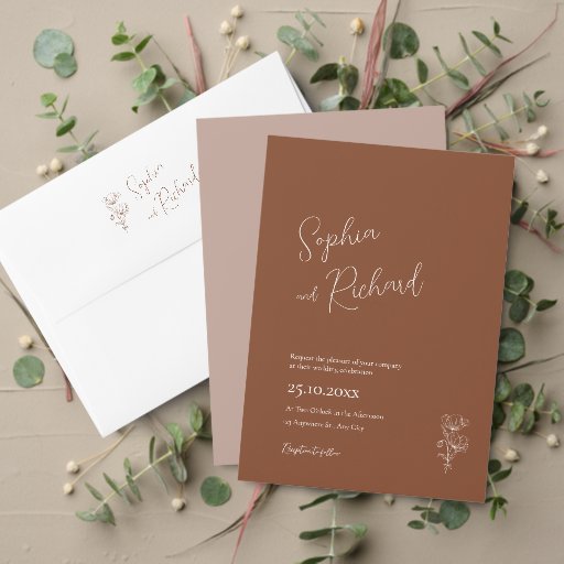 Elevate your tablescape with these effortlessly elegant terracotta-toned napkins, featuring delicate hand-drawn botanical details in a minimalist boho style. Perfect for rustic weddings, autumn celebrations, or earthy boho receptions, these high-quality linen-finish napkins add organic texture and warm sophistication to your dining decor.