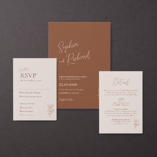 Complete your wedding suite with this beautifully coordinated customisable RSVP card, featuring delicate minimalist floral line art and elegant script typography. The warm terracotta tones and organic design elements perfectly complement your boho or autumn wedding theme.