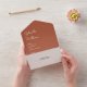 All in one wedding invitation featuring your monogram initials and elegant modern minimalist typography on a terracotta background. The invitation includes a perforated RSVP card that’s can be individually addressed or left blank for you to handwrite your guest's address details. Designed by Thisisnotme©