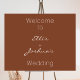 Simple, modern and minimalist in style, terracotta colored wedding welcome sign with white text.