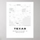 This minimalist Texas map art presents a bold black and white design with precise coordinates, celebrating the Lone Star State with modern flair. Ideal for decor, this piece adds a touch of Texas spirit to any room.