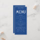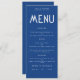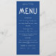 Minimalist Text mid Blue Wedding Menu card. Available digitally and printed. Easily personalise the text to your own details which includes alternatives for your vegan or vegetarian options. You can change if you wish to any colours of your choice to match your wedding theme.