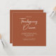Invite your friends and family with this Minimalist Thanksgiving Dinner Orange Terracotta Script Invitation. It is simple elegant designed with a customisable terracotta orange background on both sides. The lettering is white and simple with the words "Thanksgiving Dinner" in trendy handwriting lettered script font.