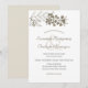 This minimalist botanical wedding invitation features sketch art branches, leaves, and brown berries along the top. The card back matches a hue from the berries. Personalise the design with your wedding details in the template fields.