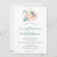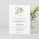 This minimalist botanical wedding invitation features a bouquet of orange shaded florals along the top and back bottom. The card back matches a hue from the flowers. Personalise the design with your wedding details in the template fields.