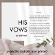 Minimalist Typography Custom Any Colour His Vows A simplistic, fully customiseable design for the groom's vows, with modern typography. Easily personalise the text, and you can also change the font style, size and colour, as well as the background colours on each side if you wish.