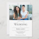 A minimalist photo wedding invitation in white with grey lettering. This invitation pairs simplicity with a personalised photo of your love. Simply add your information and photo, add this invite to your cart, and enjoy your wonderful wedding.