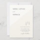 Three geometric, stylised fir trees representing a mountain forest decorate this elegant, modern minimalist, simple and sophisticated winter wedding invitation template that features modern typography, a touch of simple, modern script calligraphy and an asymmetrical frame in an off-white colour. On the back, a template for one photo. A nice choice for couples who love the mountains, skiing, snowboarding, winter sports and who are having a November, December or January wedding.