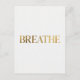 Gold gradient text with word breathe on gray background, motivational quote text design.