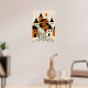Minimalist village with cobblestone street and sun poster