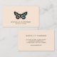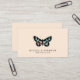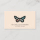 Minimalist and elegant business cards with a simple pink, aqua blue and black butterfly design on a pastel peach background. Created for aestheticians, spas, cosmetologists, hair stylists, massage therapists and yoga instructors.