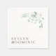 A minimalist wedding napkin featuring elegant watercolor greenery and foliage. The simple botanical design adds a natural, refined touch to your wedding table decor. Perfect for modern, garden, or outdoor celebrations.