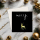 A modern minimalist black and white Christmas card designed with a hand-painted watercolor gold reindeer and modern typography.