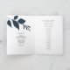 These unique wedding ceremony programs feature a minimalist wedding ceremony design with elegant midnight blue leaves—perfect for couples seeking a modern, refined look. This wedding ceremony pamphlet doubles as a personalised wedding ceremony booklet, with customisable template fields for your details, timeline, and trendy wedding program wording.