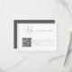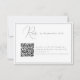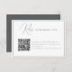 This chic and modern wedding RSVP card features a stylish design with a convenient QR code, allowing guests to easily respond online via your wedding website. Guests can scan the code or visit the provided link to RSVP. This card adds a modern touch to your wedding stationery, perfect for tech-savvy couples looking to streamline the response process. Ideal for both intimate and grand weddings.
