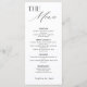 Celebrate your special day in timeless style with this elegant minimalist wedding menu template. Featuring a sophisticated mix of modern typography and delicate script, this customizable menu card is perfect for any wedding reception, rehearsal dinner, or formal event. Easily personalize the text with your own names, menu items, and wedding details in Zazzle’s design tool.