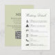 Elegant wedding timeline details card featuring a clean, minimalist layout with soft botanical accents and modern icons. This design includes a convenient QR code for guests to easily access your wedding website, schedule, and additional event details. Perfect for classic, garden, or modern weddings, this enclosure card keeps your celebration organised while maintaining a timeless and sophisticated look. Personalise with your timeline, names, and wedding information for a seamless guest experience.