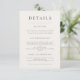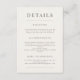 A beautifully simple wedding details card designed with a subtle watercolour effect botanical line drawing behind clean modern typography and soft neutral tones. This minimalist information card provides guests with everything they need to know, including your wedding website, accommodation, travel details, schedule, or any important notes.