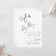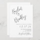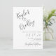 White wedding invitations with black text. Modern, handwritten font is used for slanted names at the top, which are oversize. First names of the couple are used. Invitation text is aligned to the right side of the paper with date of wedding in larger text. The reverse is plain white. Upgrade the paper if you prefer, and also download the design to share as you choose.