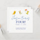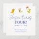 Celebrate your little one's special day with this adorable dinosaur-themed birthday invitation! The card features a simple and elegant design with cute cartoon dinosaurs wearing party hats and carrying balloons, adding a fun and festive touch. The text "Jason turns FOUR!" is displayed prominently in a playful font, with placeholders for the name and age to be customised for your child's birthday. Below, the party details are clearly presented, including the date, time, and location of the event. Invite friends and family to join in the prehistoric fun at [Party Venue], located at [Party Address], on [Party Date] at [Party Time].