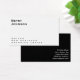 An elegant minimalist white and black business card with space for your name, professions, and contact information.