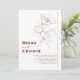 Terracotta minimalist boho wedding photo invitation features white peony flowers, modern typography and couples photo on the backside