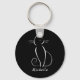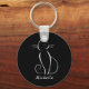 Minimalist White Cat On Black Add Name Key Ring