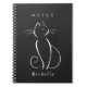 Minimalist white cat on a black background notebook. Personalise this elegant notebook with your name.