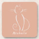Minimalist white cat on a pink background coasters. Personalise this elegant coasters with your name.