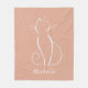 Minimalist White Cat On Pink Add Name Fleece Blanket