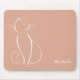Minimalist white cat on a pink background mouse pad. Personalise this elegant mouse pad with your name.