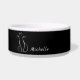 Minimalist White Cat On a White Background cat pet bowl. Personalise this elegant Cat Pet Bowl with your name.